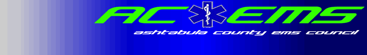 ACEMS Mission Statement To provide a forum for emergency medical issues, activites, and events whose outcome should impact the future of Emergency Services at the local, state, and national levels. To create and foster a supportive operating environment for emergency care providers by coordinating the various levels of Emergency Medical Services, educational programs, and by interaction between Prehospital Care Providers, and other Health Care Providers. To disseminate information to Emergency Care Providers about current regulations, proposed changes to regulations, and certification requirements through Continuing Education. To provide information on new equipment, new medical procedures and potential problem areas as they occur. To encourage the implementation of criteria and guidelines for Ashtabula County Emergency Medical Services and Prehospital Care Providers pursuant to local, state, and national criteria and guidelines. To enhance the image of Emergency Medical Care Providers. To monitor and communicate EMS protocol guidelines within Ashtabula County with respect to the laws of the State of Ohio, Diversity and variability of the service area and in conjunction with the Region X trauma protocols.